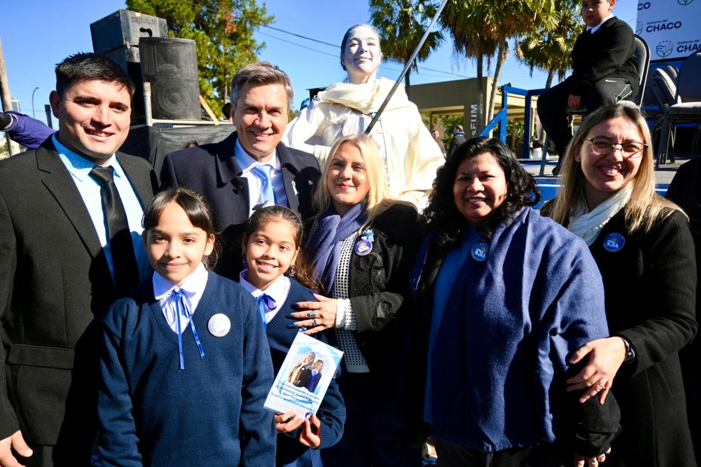 El gobernador Leandro Zdero encabezó hoy el acto de Promesa de Lealtad a la Bandera Argentina en el marco del 205º aniversario de la Bandera Nacional Argentina, en homenaje del fallecimiento del creador de nuestra enseña patria, el General Manuel Belgrano. El gobernador Zdero expresó: «En tiempos donde los desafíos nos interpelan como sociedad, recordar a Manuel Belgrano y honrar nuestra Bandera, es renovar el compromiso con los valores que nos fundan». Asimismo, afirmó que esta promesa «no es solamente un gesto ni una ceremonia, sino un compromiso profundo con los valores que nos definen como comunidad».