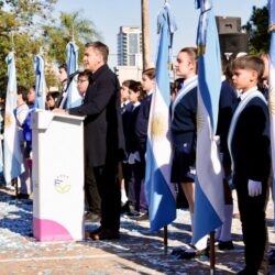 El gobernador Leandro Zdero encabezó hoy el acto de Promesa de Lealtad a la Bandera Argentina en el marco del 205º aniversario de la Bandera Nacional Argentina, en homenaje del fallecimiento del creador de nuestra enseña patria, el General Manuel Belgrano. El gobernador Zdero expresó: «En tiempos donde los desafíos nos interpelan como sociedad, recordar a Manuel Belgrano y honrar nuestra Bandera, es renovar el compromiso con los valores que nos fundan». Asimismo, afirmó que esta promesa «no es solamente un gesto ni una ceremonia, sino un compromiso profundo con los valores que nos definen como comunidad».