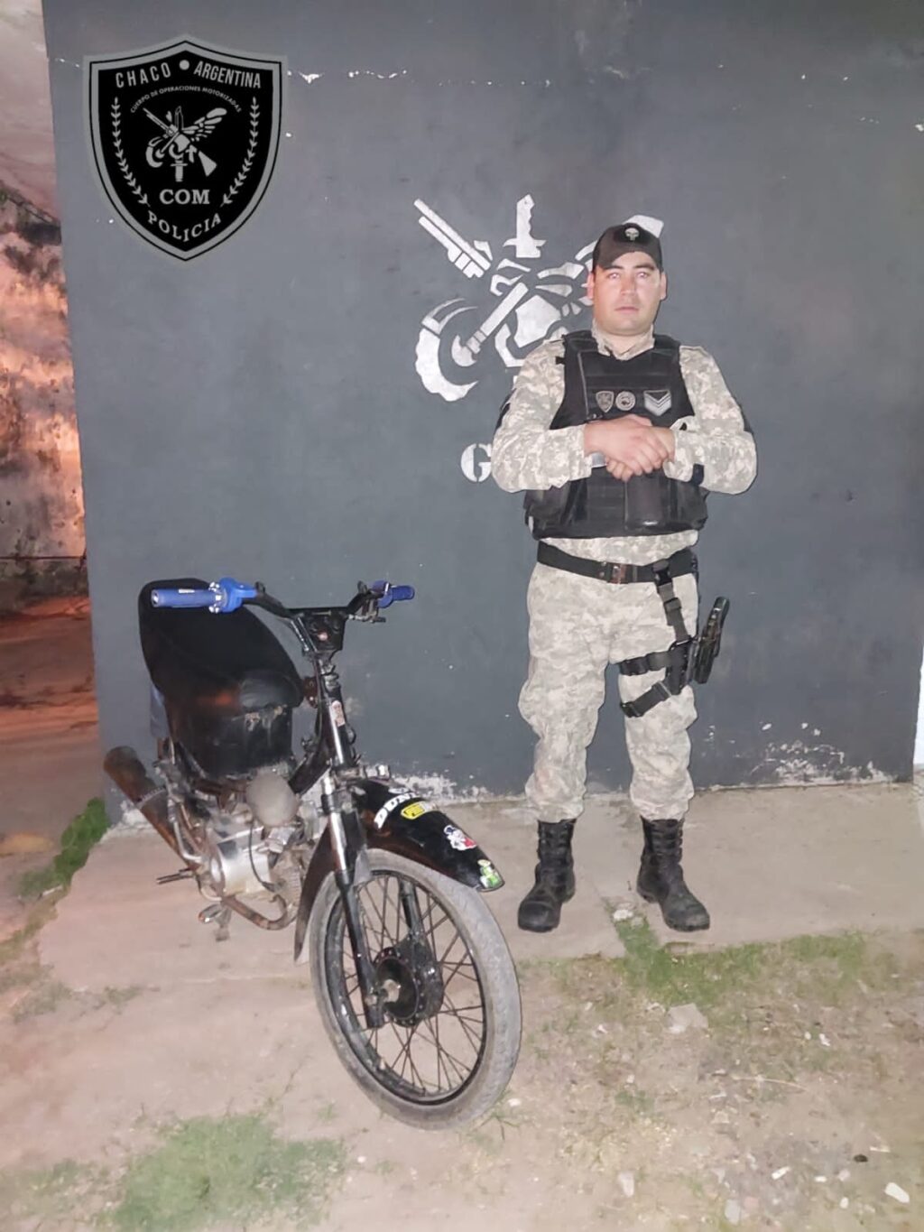 Más tarde, cerca de las 2 de la madrugada, en avenida Chaco y San Martín, el personal motorizado demoró a un joven de 17 años que se desplazaba en una motocicleta Corven color azul. El rodado presentaba faltantes de carenado y signos de manipulación en el número de motor, por lo que se solicitó la intervención de la División Verificación Vehicular de la Policía Caminera para determinar su procedencia.
