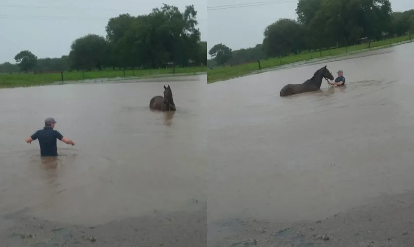 RESCATARON A DOS CABALLOS EN MEDIO DE LA INUNDACION