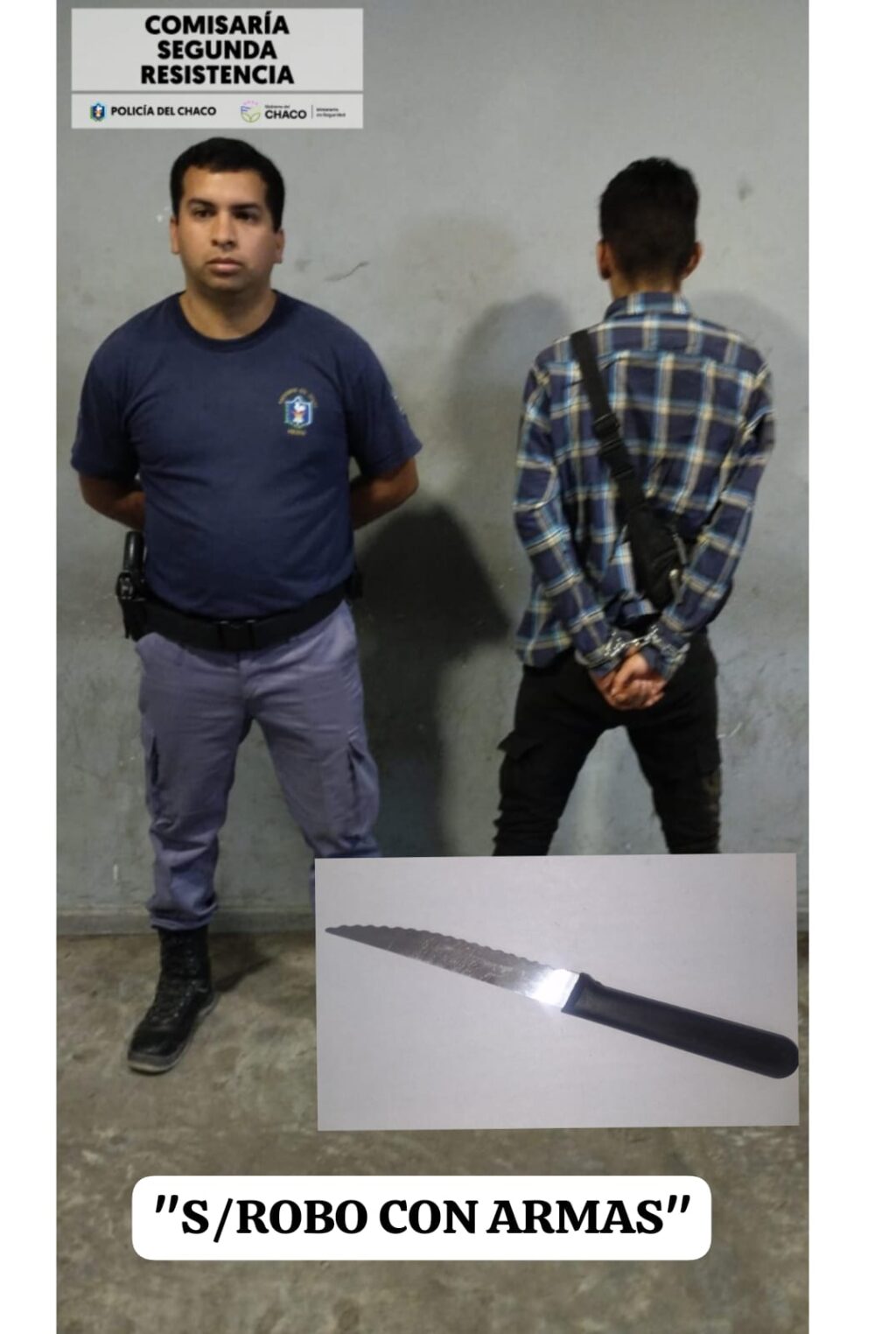 Pocos minutos después lograron su detención a escasos metros del lugar, en su poder secuestraron el cuchillo utilizado. Fue conducido a la dependencia policial.