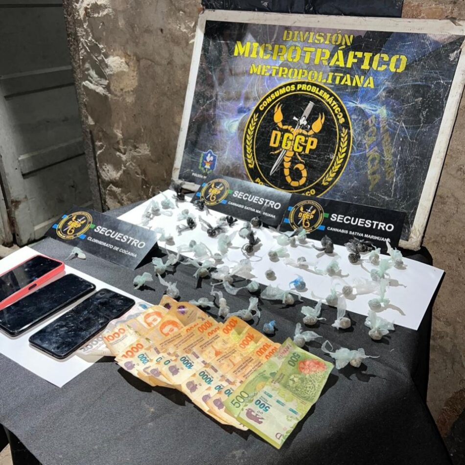 En total, los antinarcóticos incautaron 52 bochitas de marihuana que pesaron un total de 40 gramos, una bochita de cocaína, 12 mil pesos en efectivo y tres celulares. La mujer de 58 años, moradora de la vivienda allanada, terminó detenida bajo la causa de “supuesta infracción a la Ley de Estupefacientes”.