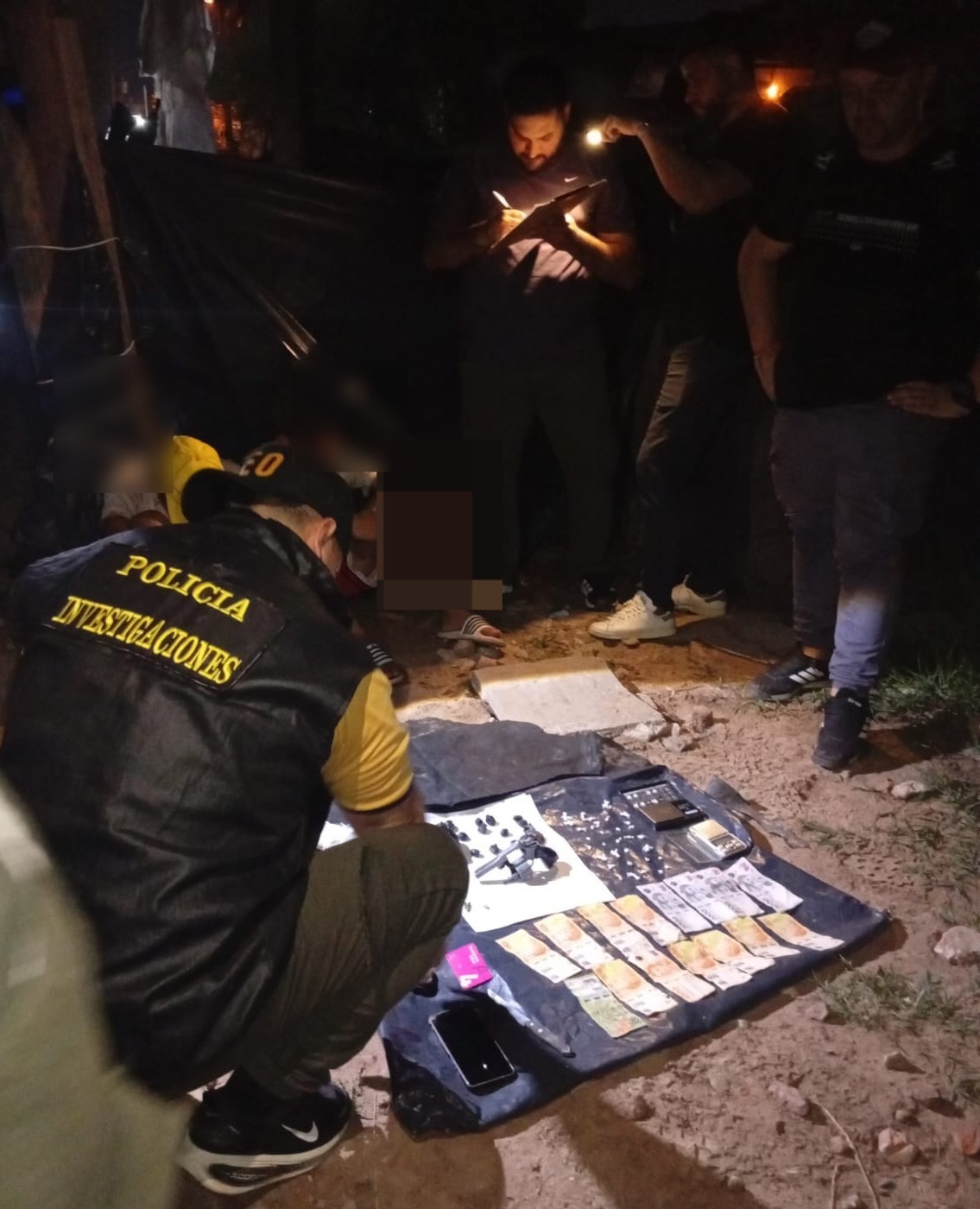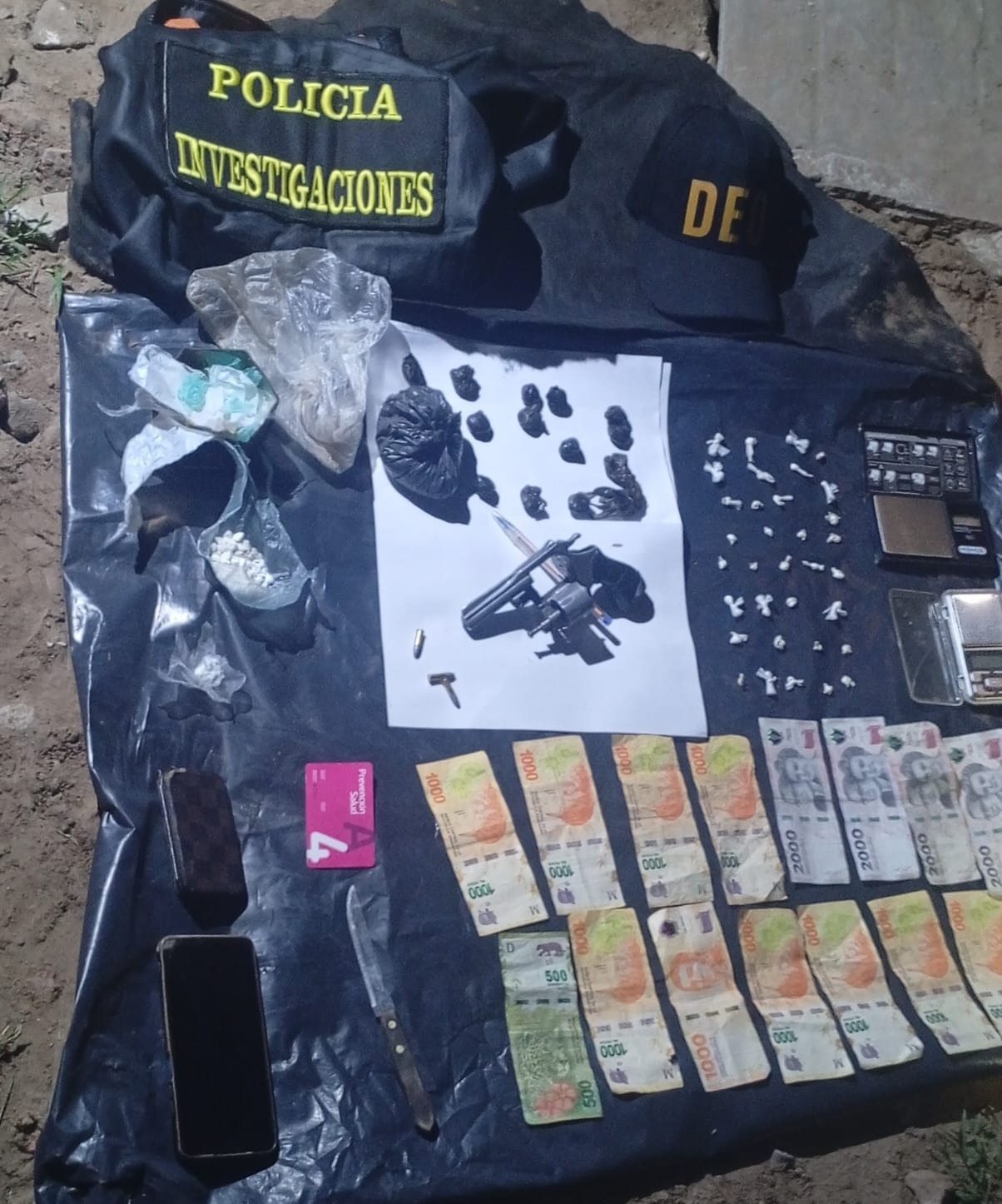 Durante el procedimiento, uno de ellos, de 19 años, tenía en su poder envoltorios con sustancias prohibidas, dinero en efectivo y otros elementos vinculados a la actividad ilícita. Asimismo, entre sus prendas se halló un revólver calibre 22 con cartuchos del mismo calibre.