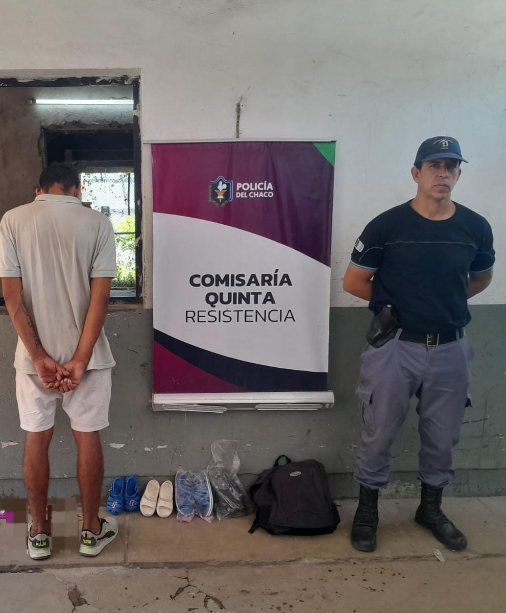 RESISTENCIA DETUVIERON A UN HOMBRE QUE ROBABA SANDALIAS CON UNA RAMA DESDE LA VENTANA DE UN LOCAL