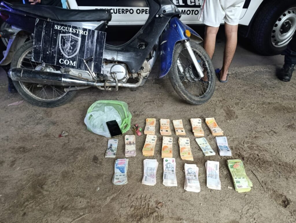 Durante la identificación, los agentes detectaron que la motocicleta en la que se desplazaban, una Honda Wave, presentaba adulteraciones en el número de motor. Además, poseían un teléfono celular Redmi Note 14 y la suma de $1.820.400 en efectivo.