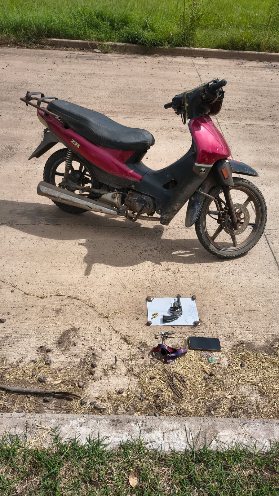 Inmediatamente los agentes se dirigieron al lugar con las características aportadas, en pocos minutos identificaron a un hombre con vestimenta y motocicleta similar. En el baúl del rodado tenía un revólver calibre 32 con cuatro cartuchos del mismo calibre. Fue conducido a la dependencia policial.