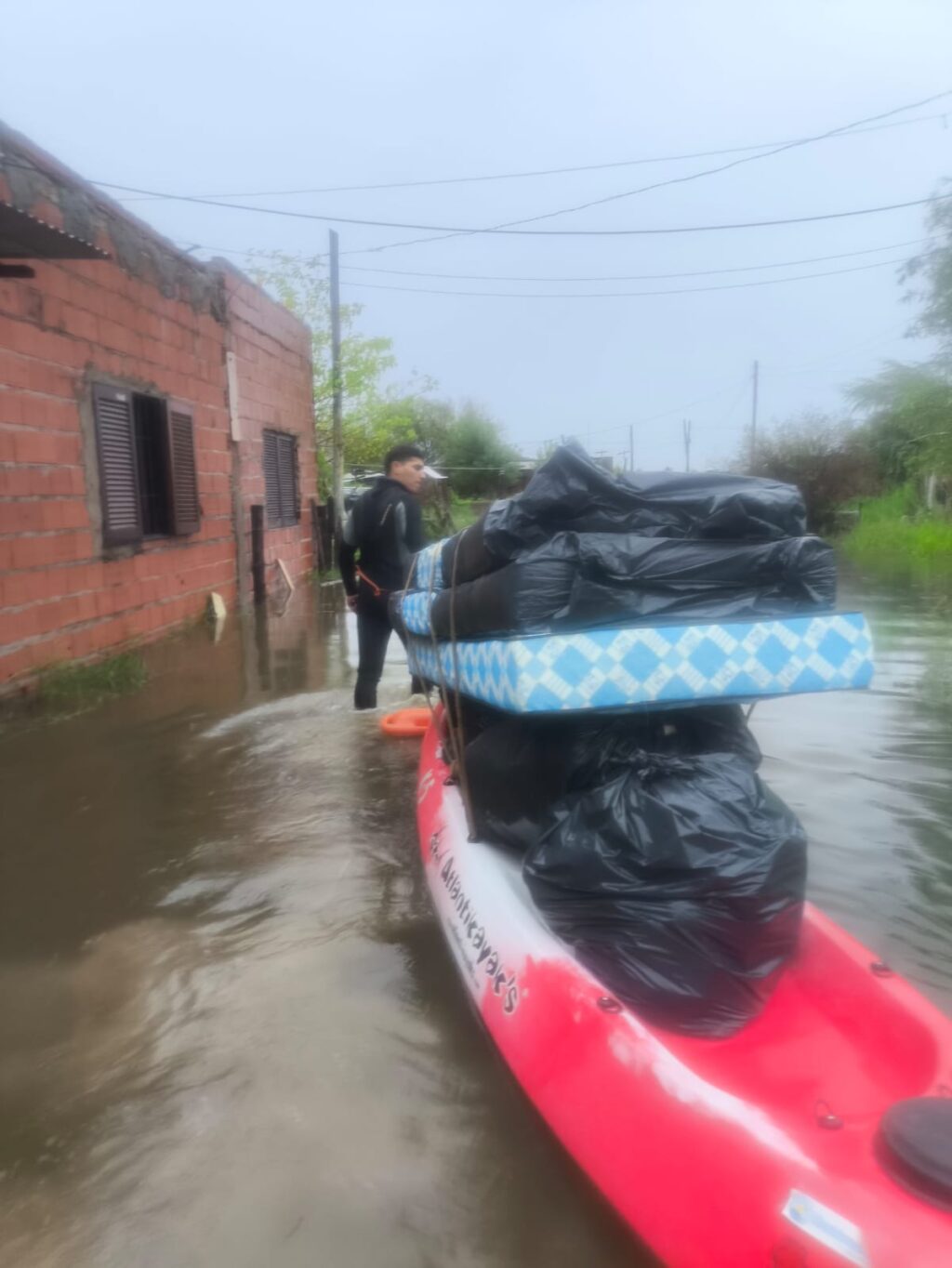 Por disposición de la superioridad, se comisionó un móvil de la unidad con personal de la Sección Rescate y Salvamento, quienes, mediante la utilización de un kayak identificado policialmente, equipo de neoprene y elementos de seguridad, lograron acceder a un domicilio donde una familia se encontraba aislada a causa de la inundación.