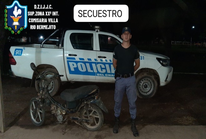 CRIA. VILLA RIO BERMEJITO: Personal apostados en PUENTE LA SIRENA, son alertados por transeúntes que dos masculinos llevaban una motocicleta intentando arrancarla en zona del Pje. El Colchón cercanía de la escuela. Constituida prevención visualiza dos masculino con una moto a la par, éstos al notar presencia policial emprenden huida introduciéndose en sector de monte abandonado el rodado. Misma, se trata de una GUERRERO, 110cc, sin carenado, sin dominio colocado, sin luces, sin llave de encendido, motor N° AD1P52FMHF0012944 , cuadro N° 8A2XCHLM6FA089508 . Se procedió al formal secuestro del rodado. Se consultó numeración en PMU – POLICIA DEL CHACO arrojando resultado negativo. Se informa fiscal en turno Dra. Raquel Maldonado. DISPUSO: se realice averiguaciones y actuaciones pertinentes para dar con propietario.