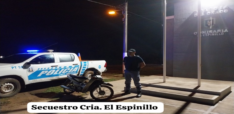 CRIA. EL ESPINILLO, Procedió secuestro (01) motocicleta: