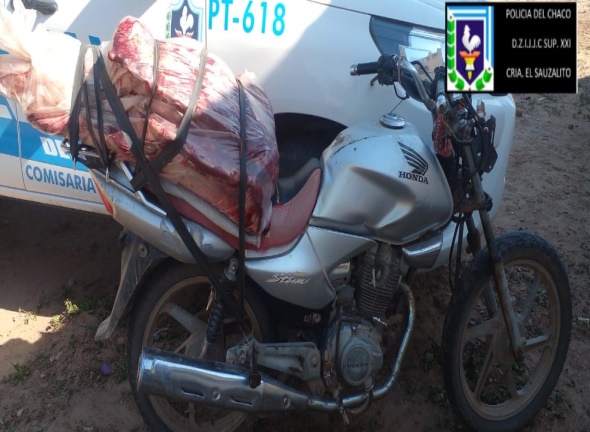 CRIA EL SAUZALITO: Procedió secuestro 1/2 res carne total 70 kg producto cárnico, (01) motocicleta HONDA STROM 125 C.C. guiada p/menor B.L.A. (17). Se dió Intervención Juzg.Paz y Faltas local asimismo Juzgado Menor M. N. Pompeya.