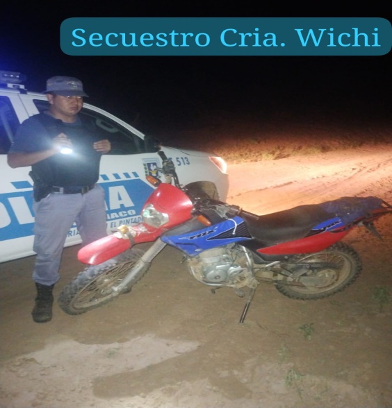 CRIA WICHI EL PINTADO: Procedió secuestro (01) motocicleta YAMAHA YBR 125 C.C. C/GRIS, (01) MOTOCICLETA HONDA XR 125 C.C. COLOR ROJA SIN DOMINIO, ambos conductores fueron notificados respectiva Acta Contravencional en libertad p/Infr.Cod.Faltas Provincial.