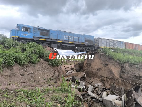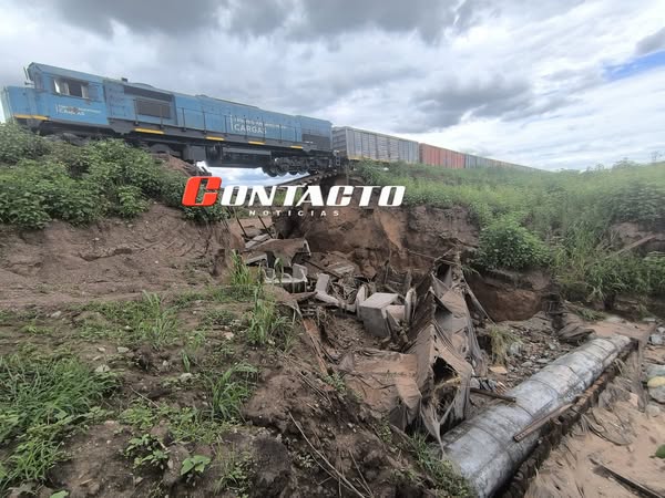 La formación quedó colgada. No hay víctimas. Ocurrió en Horcones, en el tramo de Rosario de la Frontera y Metán. El puente colapsó por el temporal de lluvia,y socavaron los pilotes del puente, cuando pasaba la formación el mismo cedio