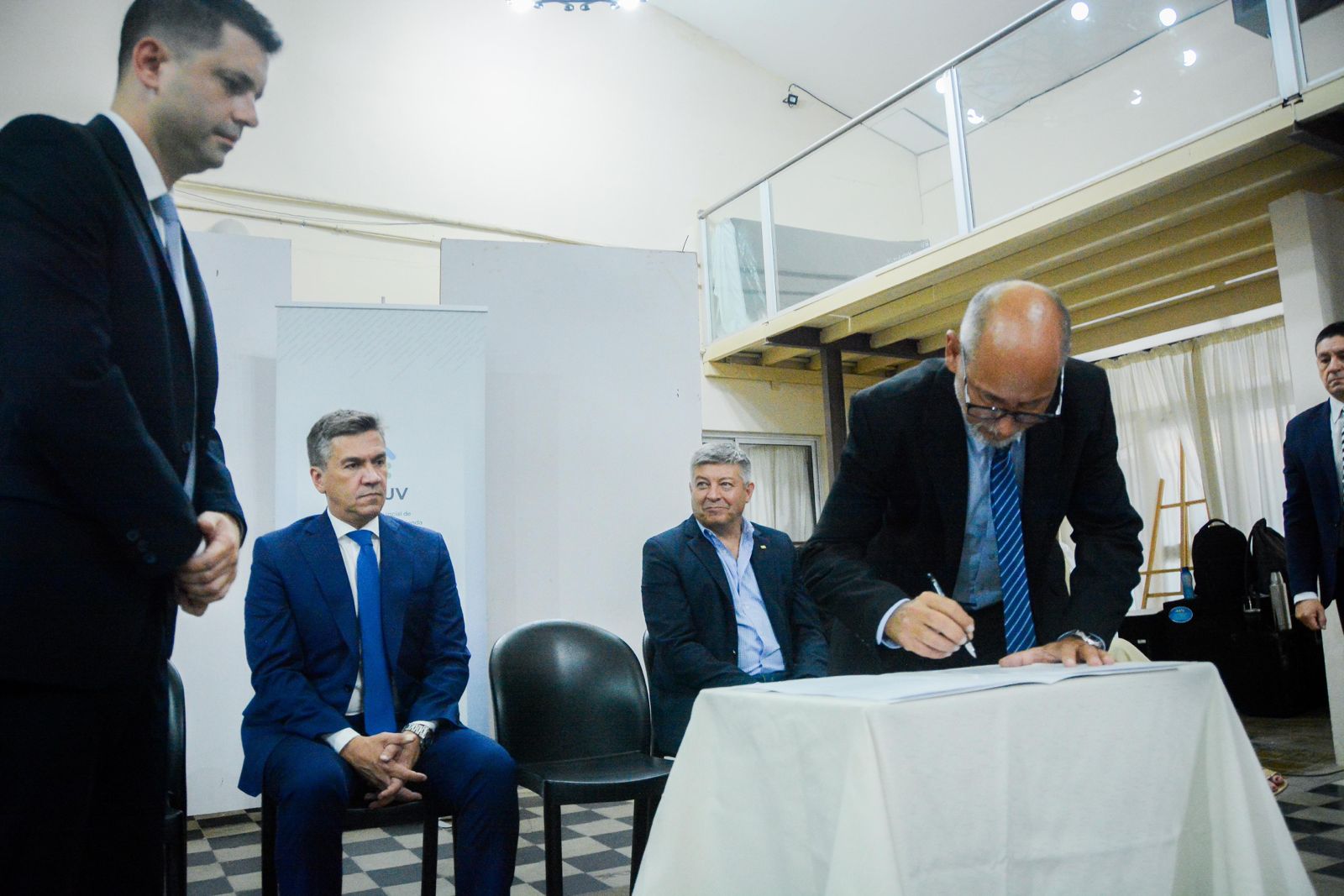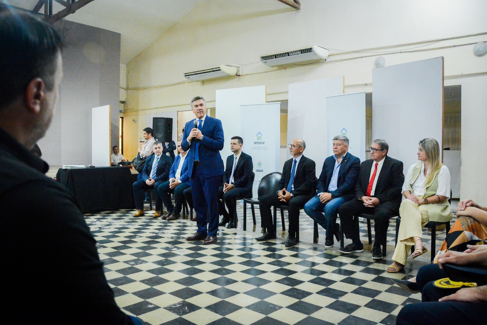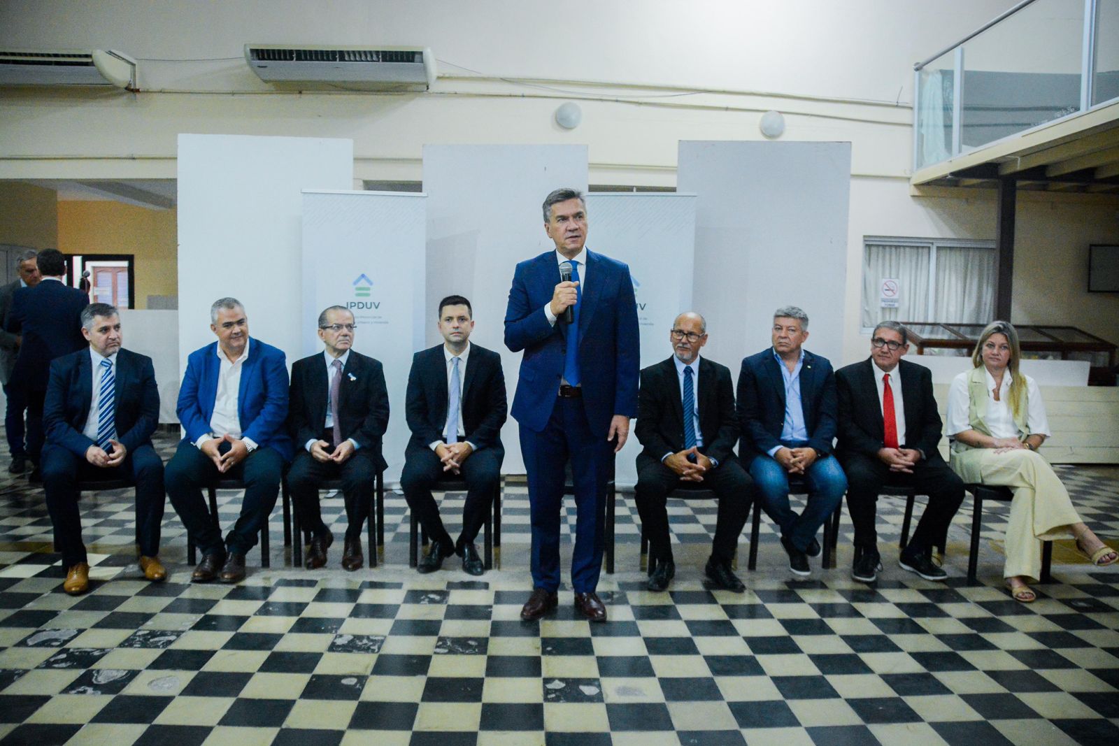 Participaron de este acto, el ministro de Seguridad, Hugo Matkovich; el ministro de Hacienda y Finanzas, Alejandro Abraam; la Secretaria General de Gobernación, Carolina Meiriño; el administrador General de la Dirección de Vialidad Provincial, Omar Canela; los vocales del IPDUV, Diego Gutiérrez y Daniel Monti; y el diputado Nacional, Gerardo Cipolini.