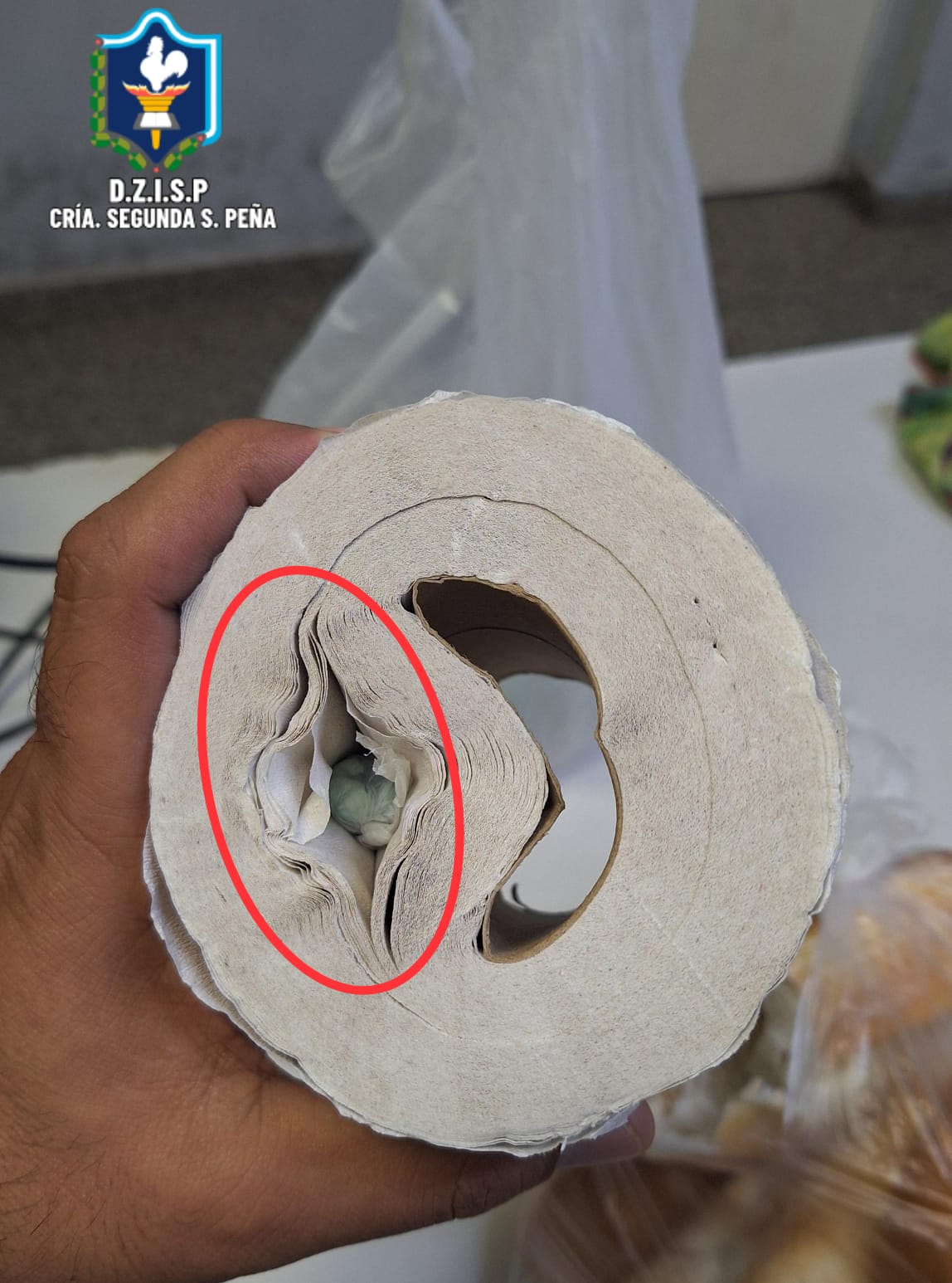 Cuando revisaron todos los elementos descubrieron que dentro de un rollo de papel higiénico había escondido 6 envoltorios con lo que parecía ser estupefacientes. Al lugar arribaron los antinarcóticos y constataron que se trataba de cocaína con el peso total de 0.8 gramos.