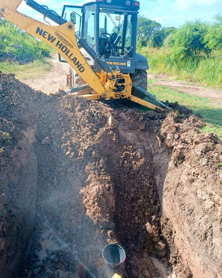 Desde la empresa estatal explicaron que, tras detectarse la pérdida, comenzaron los trabajos por parte de la Gerencia de Servicios a cargo de Maximiliano San Martín, a través de los agentes de Redes de Agua Zona Norte, con dos retroexcavadoras, una máquina excavadora, grupo electrógeno y bombas.