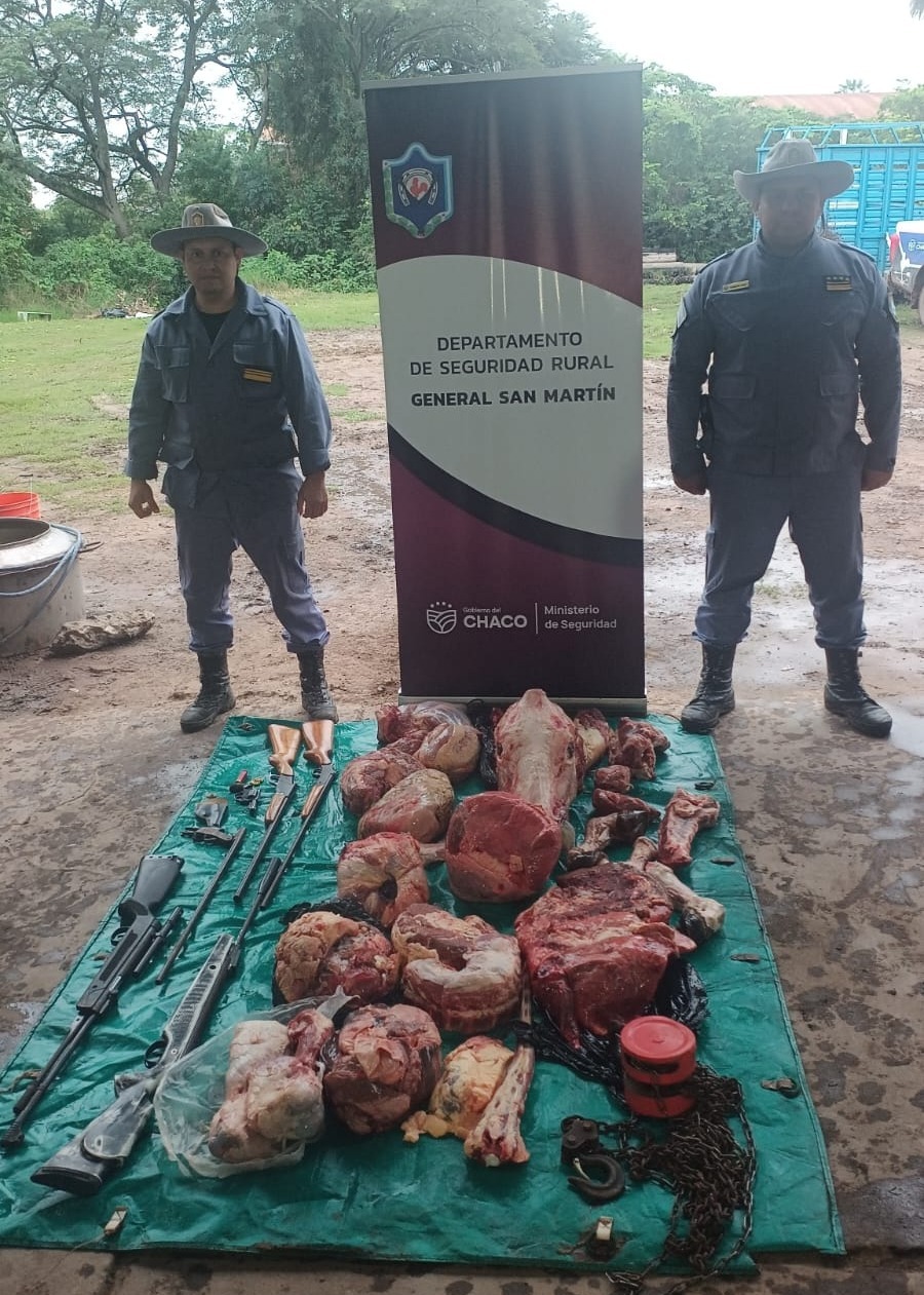 También se incautaron dos bovinos, 100 kilos de carne y armas de fuego.