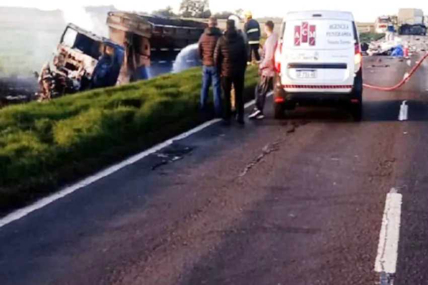 El hecho ocurrió durante la tarde del martes e involucró a una ambulancia y cinco camiones. La ambulancia quedó envuelta en llamas. Sus dos ocupantes, un médico y el chofer, murieron en el acto. Se dirigían a Rosario para trasladar a una paciente.