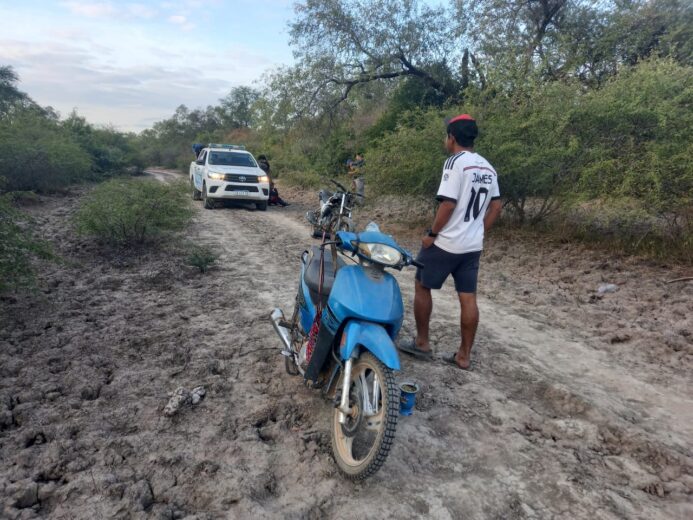 Tras arduas tareas investigativas y preventivas del personal destacado esta Unidad de Orden Publico, lograron empleadod del Destacamento Tres Pozos en Pje. «El 50», a 50 Km. Aprox., de la localidad el Sauzalito hacia el norte, en control motovehicular para dar con dicho bien, se logró interceptar el paso de un rodado similar y la demora de 3 ocupantes, procediendo a verificación de numeración y tras corroborarse se efectuó *secuestró* del la motocicleta y a la conducción de masculinos. Dos de ellos mayores de edad y un menor. todos Ddos. en localidad Sauzalito.
