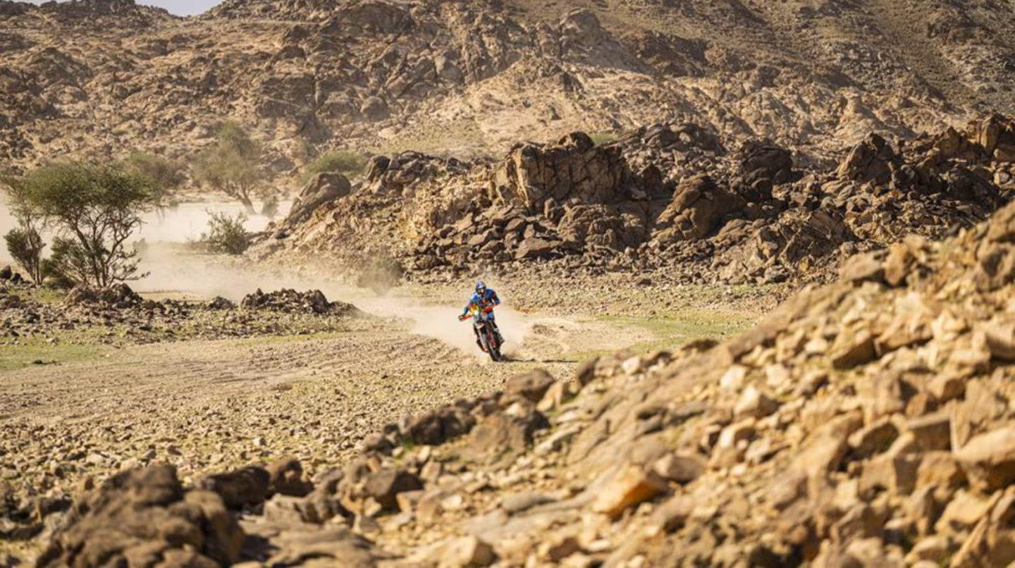 El Rally Dakar 2026 ya está en marcha tras cumplirse este sábado la etapa prólogo con la localidad Yanbu, Arabia Saudita, con un recorrido cronometrado de 22 kilómetros. En la división motos, Luciano Benavides (Red Bull KTM Factory) se ubicó en la cuarta posición, a solo once segundos del sorprendente ganador del día, el joven español Edgar Canet.