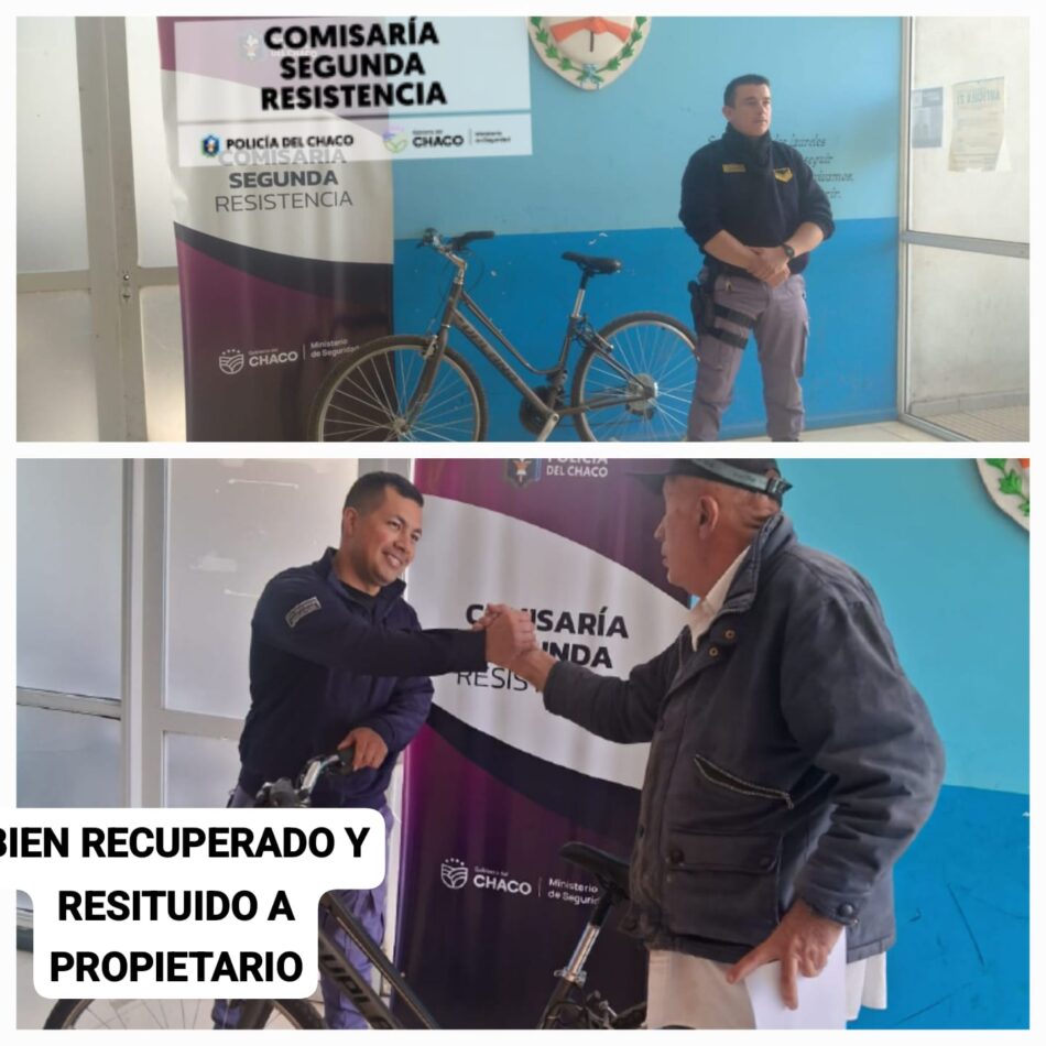 Los agentes incautaron la bicicleta y la trasladaron a la unidad donde aguardaba su propietario de 67 años, quien agradeció la rápida intervención policial.-