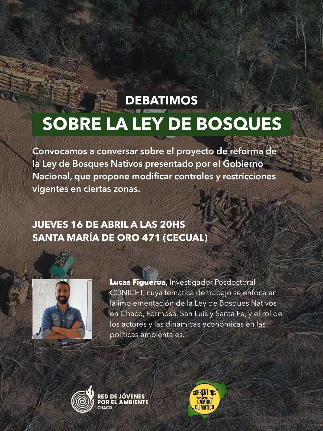 Ayer jueves 16 de abril se llevó adelante en el Centro Cultural Alternativo (CECUAL), ubicado en Santa María de Oro 417, una charla-debate sobre la Ley Nacional N.º 26.331 de Presupuestos Mínimos de Protección Ambiental de los Bosques Nativos, en un contexto de creciente preocupación por el proyecto de modificación impulsado a nivel nacional.