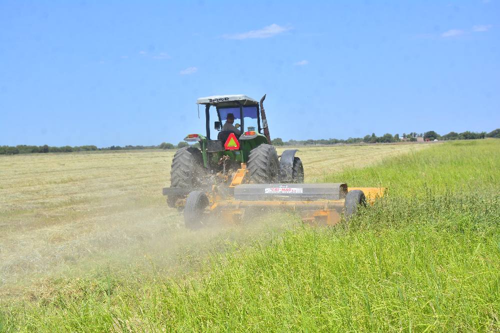 A través de la arrolladora, el municipio prepara los rollos de pastura para reserva de invierno. En esta oportunidad, se está trabajando en lotes de alfalfa, y grama rhodes una de las pasturas más valiosas para la ganadería.