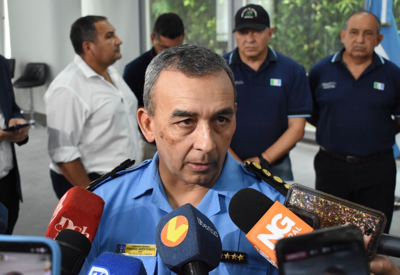 El ministro de Seguridad, Hugo Matkovich, junto al jefe de la Policía del Chaco, Fernando Romero detallaron en rueda de prensa las acciones del operativo antidrogas más importantes realizado en la provincia, que permitió el secuestro de más de 97 kilos de cocaína en la Ruta Nacional N° 16, a la altura del kilómetro 33,5, en la zona de Puerto Bastiani.
