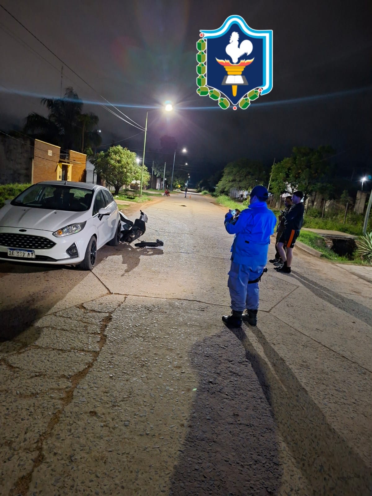 Por causas que aún se investigan, una motocicleta marca Corven Energy, sin dominio colocado, colisionó con un automóvil Ford Fiesta de color blanco.