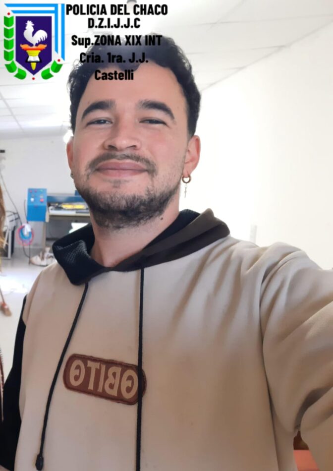 La Policía del Chaco en base a una denuncia registrada en Comisaria Primera J.j. Castelli, solicita a la comunidad su valiosa colaboración de informar a la unidad policial más cercana cualquier información relacionada al paradero de RICARDO FABIÁN GABRIEL MONZÓN GASSMANN, de 27 años, de 1,80 metros de altura, de contextura física robusta, tez blanca, cabello corto ondulados castaño oscuro, ojos color marrones ,usando la siguiente vestimenta y/o efectos personales: vestía una campera tipo rompe viento con capucha, color negro con detalles en gris, bermuda marrón claro con zapatillas deportivas negras. Se le ha visto por última vez en Calle Saenz Peña N° 830 en fecha 18/08/2025.
