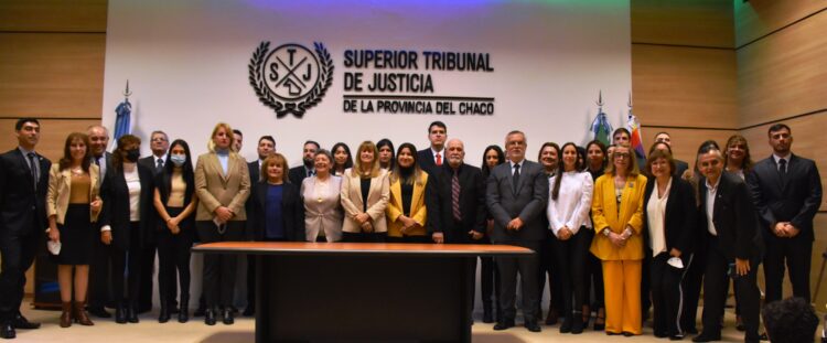 La presidenta del Superior Tribunal de Justicia Emilia María Valle tomó juramento a 29 abogados y abogadas en un acto que se realizó en el salón auditorio del STJ. Acompañaron la ceremonia la jueza Iride Isabel María Grillo, los jueces Víctor del Río y Rolando Toledo, el procurador general Jorge Canteros, el adjunto Miguel Fonteina y la defensora general Alicia Alcalá.