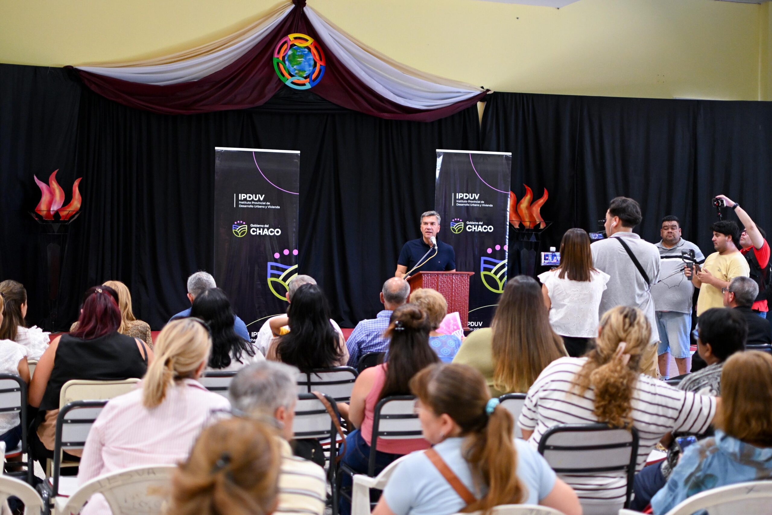 Tras la entrega, el jefe del Ejecutivo chaqueño remarcó que una de las beneficiarias esperó 45 años para obtener el título de su vivienda. “Esto nos pasa a lo largo y ancho de la provincia y por eso estamos trabajando para reparar ese daño donde el Estado no cumplió cuando la gente pagaba sus cuotas”, sostuvo.