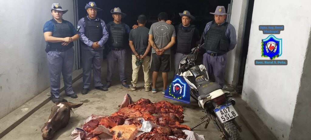 En inmediaciones de Ruta Nacional N° 16, los efectivos lograron detener la marcha del rodado y aprehender a ambos masculinos, haciendo uso de la fuerza mínima e indispensable. Posteriormente, otra comisión policial constató en el lugar de origen el hallazgo de restos de una faena equina de reciente data, sector desde donde además se habrían dado a la fuga otros individuos a bordo de la segunda motocicleta.