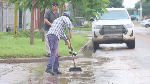 También se realizan tareas de escurrimiento de agua acumulada para evitar anegamientos y garantizar la seguridad vial.