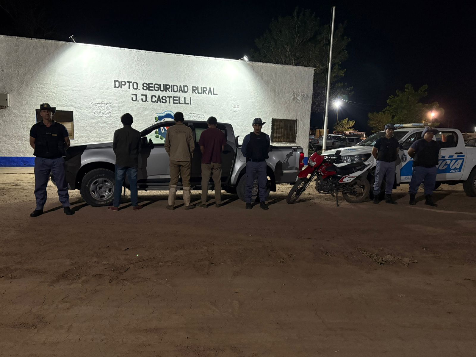 J.J. Castelli, 26 de septiembre de 2025 – En la madrugada de este jueves, personal del Departamento de Seguridad Rural de J.J. Castelli logró la aprehensión de tres hombres sospechados de haber cometido un presunto hecho de abigeato en el paraje El Salado, ubicado en el Departamento General Güemes.
