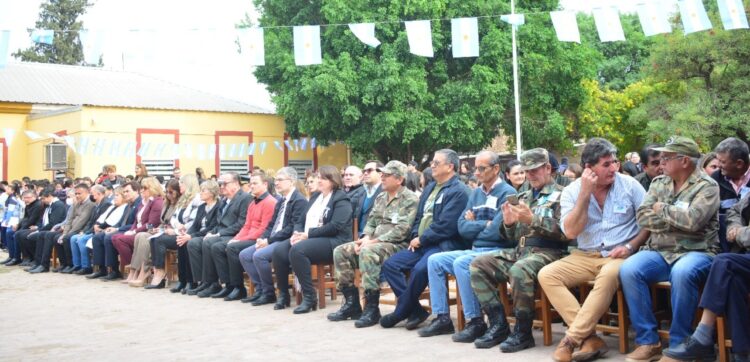 Estuvo presente el intendente Ladislao Perduk acompañado por su gabinete, concejales, funcionarios provinciales, excombatientes de Malvinas, autoridades educativas y de distintas instituciones del medio, el padre Adolfo Koska, el pastor Juan Brisuela, jefes de la Comisaría local, jefe de Bomberos Voluntarios Tres Isletas, Madrinas de Guerra, docentes, alumnos y público en general.