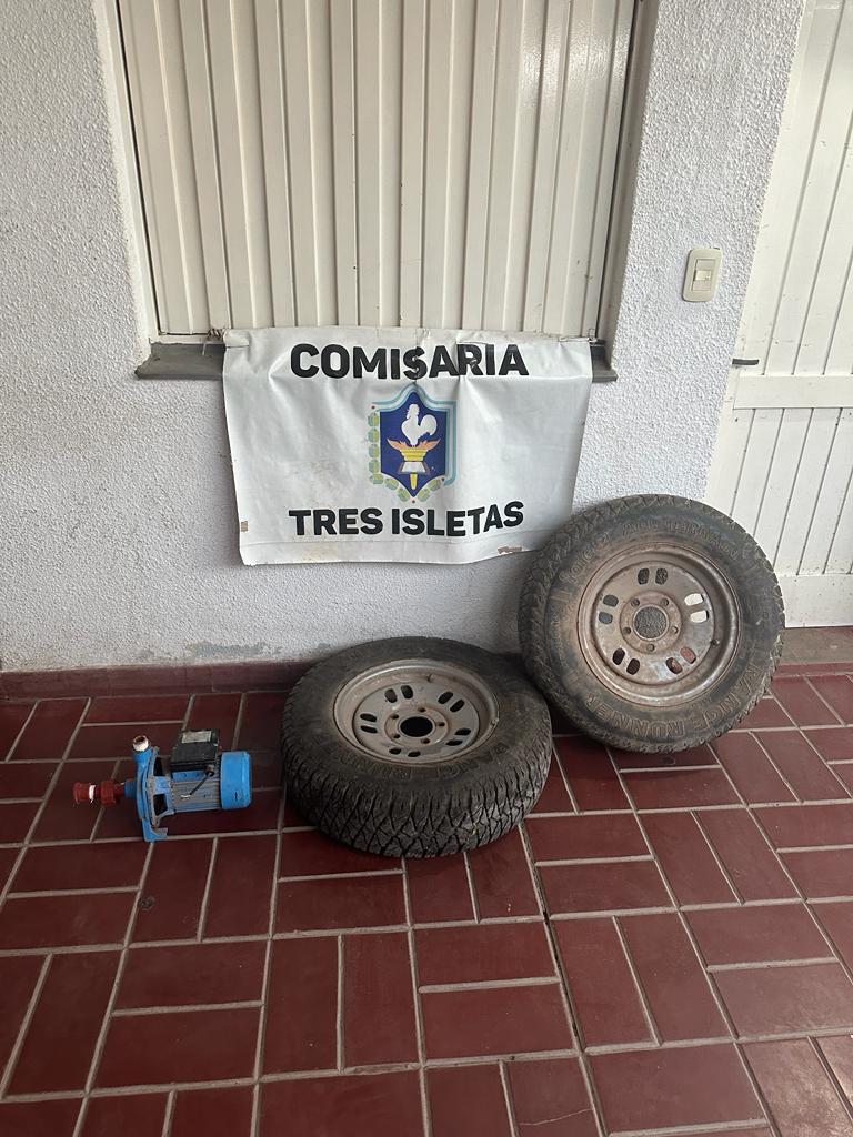 EXTRACTO: Informo fecha ciudadana MOLINA DELGADILLO SONIA (32), monja, dda. Avenida del Trabajo ciudad, DNI 95957791, denunció,  fecha horas 17:15 aproximadamente miró las cámaras de seguridad del hogar de ancianos donde observó un sujeto, sexo masculino, joven tez morena, de baja estatura con el torso desnudo con una remera negra en su mano, que ingresó al lugar donde rompió una puerta de madera del depósito y sustrajo una bomba de agua, color azul, marca GAMMA, 1 HP y dos cubiertas de camioneta, una marca PIRELLI y la otra marca FATE, con sus llantas color gris, ambas rodado 17. De averiguaciones y filmaciones estableció que esta persona sería HERNAN BENITEZ.