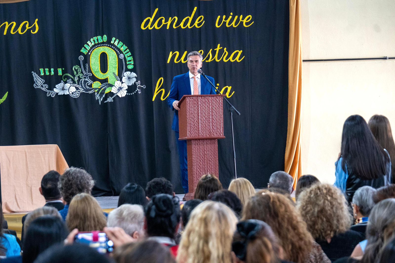 Karina Fernández, directora de la EES N° 9, manifestó: “Somos una institución de 67 años, con una población estudiantil de 520. Históricamente de nuestras aulas salieron los maestros y esa es nuestra raíz, somos una institución madre de la que surgieron otras instituciones”. “Estamos frente a un día histórico, lleno de satisfacciones para nuestra comunidad educativa. Después de 6 años de esfuerzo y perseverancia, finalmente podemos celebrar el retorno a nuestro anhelado edificio”, expresó la directora.