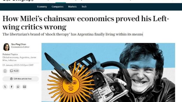 The Telegraph elogió la política de motosierra del Presidente durante su primer año de gestión, destacó su relación con Donald Trump y realizó una fuerte crítica a la izquierda.
