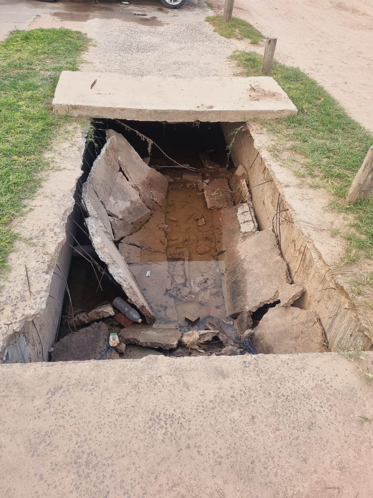 Según manifestaron, el mal estado de las tapas puede observarse claramente en las imágenes registradas por los propios vecinos, donde se evidencian roturas y hundimientos peligrosos. Sin embargo, lo más alarmante es que ya se han producido accidentes como consecuencia de esta problemática.