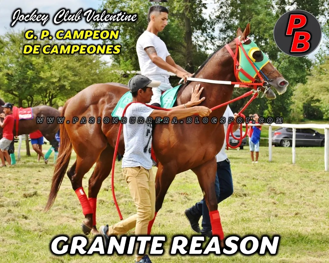 Luego de la Challenguer 2023 la pregunta fue donde y con quien corre el GRAN GRANITE, el desafío salió pronto bajo la organización de Jhoni Puchetta , destino la provincia de Córdoba Jockey Club Valentine de Sarmiento , con una arena como le gusta al gran ejemplar, allí la topada fue con 4 grandes ejemplares, con los cuales el GRAN GRANITE demostró que es el CAMPEON DE CAMPEONES.