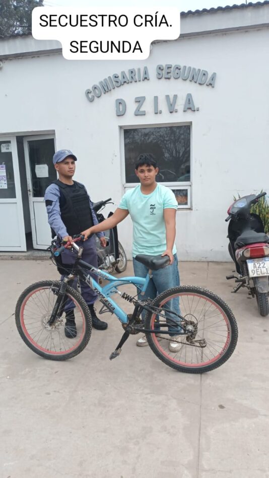 Este mediodía, agentes de la Comisaría Segunda Villa Ángela, incautaron una bicicleta Mountain Bike, color celeste, que se hallaba abandonada en la intersección de las calles Quebracho y Gutiérrez.