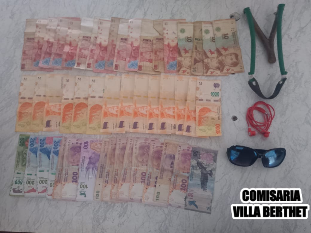 En poder del mismo de 33 años, incautaron el dinero faltante, siendo un total de 16.570, un anteojos, una gomera, un audricular y además tres plantas de marihuana. Conforme lo dispuesto por la magistratura en turno, fue notificado en ambas causas y alojado en la dependencia policial actuante.