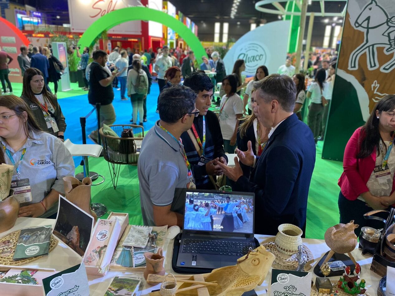 El Gobernador Leandro Zdero , durante su visita a la FIT, pasó por el stand de Villa Río Bermejito, Provincia del Chaco, reconociendo el esfuerzo de la localidad por mostrar su potencial turístico.