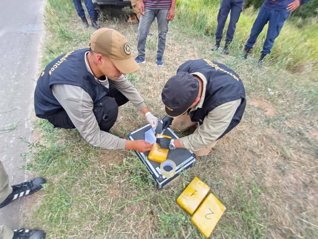 Durante un operativo de control en la ruta provincial N°3, personal de la Patrulla Vial del Interior detectó dos paquetes rectangulares envueltos en nylon, que contenían una sustancia aparentemente ilícita.