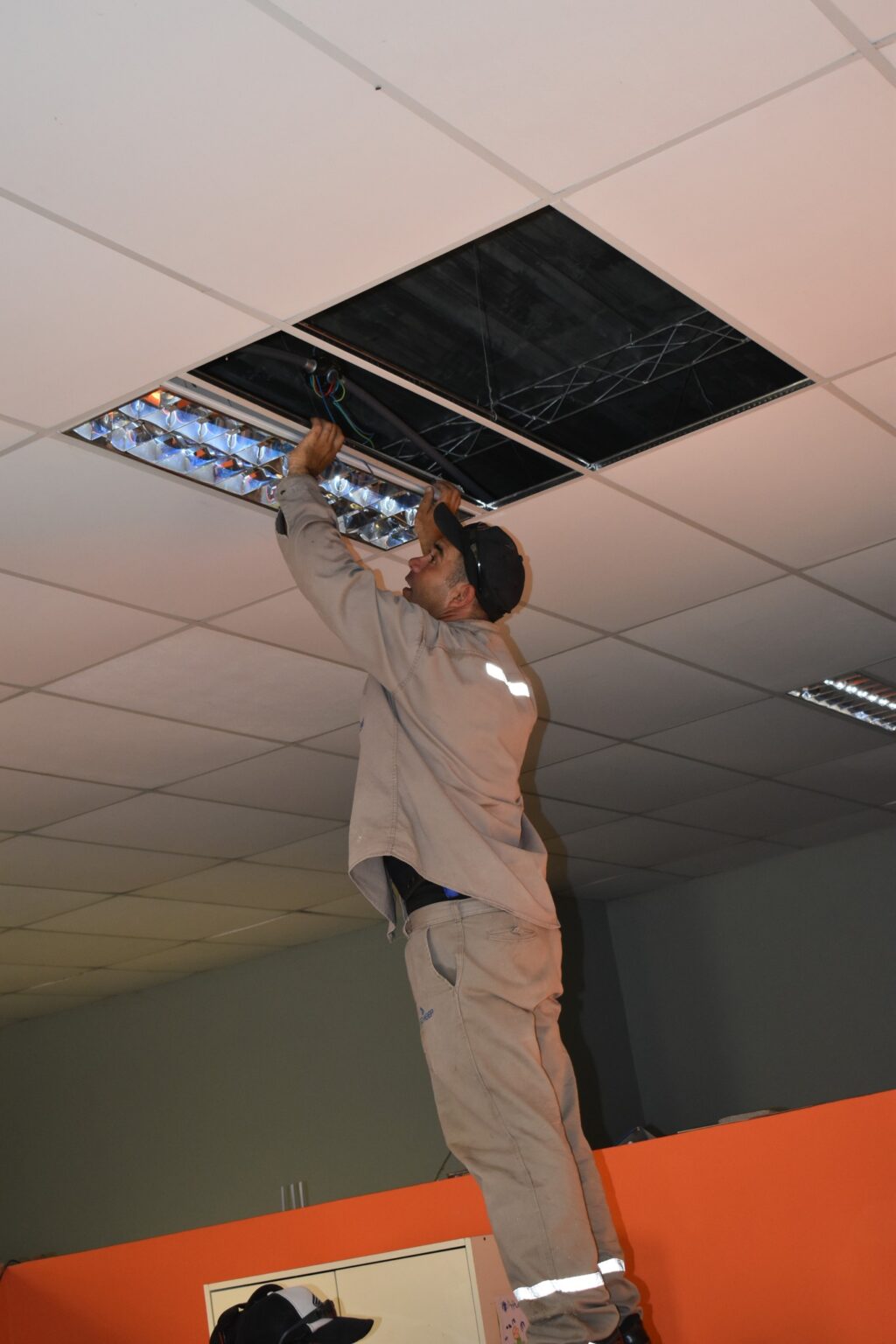 El equipo de Obras Públicas de la Municipalidad ha comenzado un proyecto de mantenimiento eléctrico en las instalaciones Municipales. Esto incluye la revisión y reparación de sistemas eléctricos, cables y equipos de iluminación en todo el edificio.