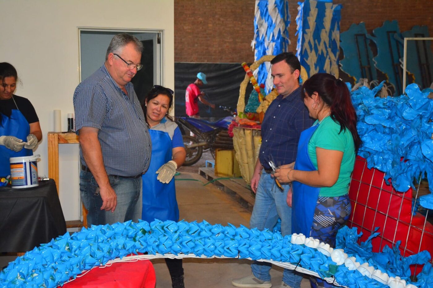 El intendente Pío Oscar Sander acompañado por el secretario de Gobierno Ismael Pablo Barnes visitó el taller de reciclado de la Subsecretaría de Ceremonial y Protocolo, donde se realizan trabajos ornamentales para las celebraciones de la ciudad.