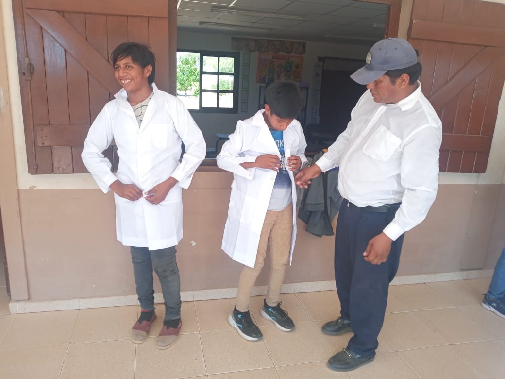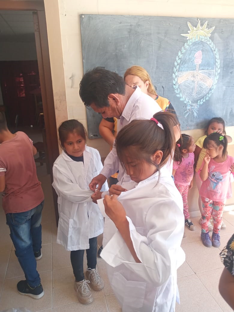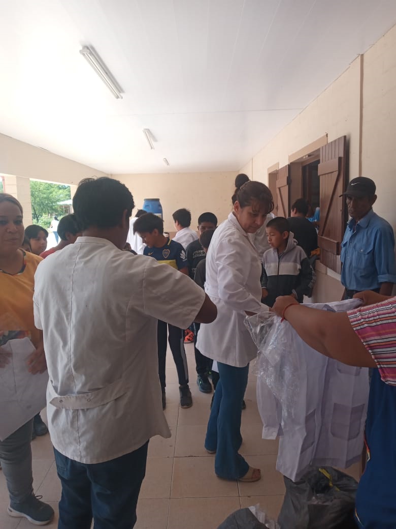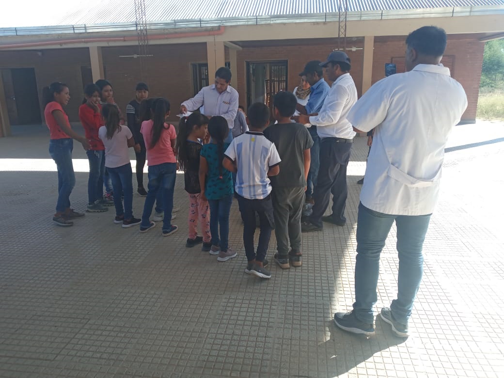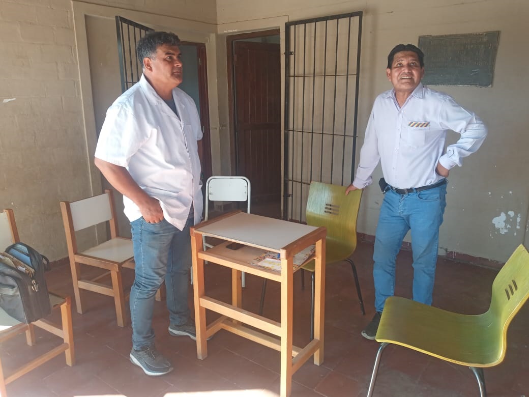 El jefe comunal de EL ESPINILLO de la provincia del Chaco, Zenón Cuellar recorre las escuelas de su jurisdicción viendo la situación de los establecimientos educativos, hablando con la comunidad educativa, hablando con los docentes y alumnos, realizando la entrega de útiles, mochilas y guardapolvos-